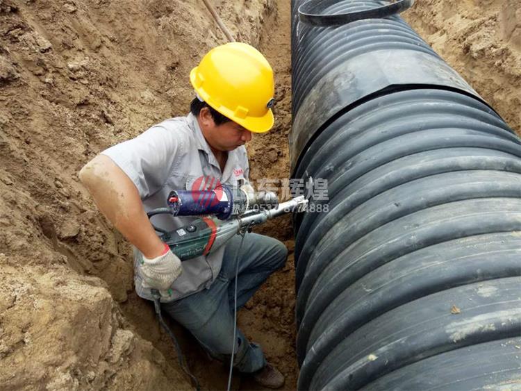 梁山龜山河工程主要用到的管材是山東輝煌生產(chǎn)的“煌達”牌鋼帶增強螺旋波紋管,山東輝煌“煌達”牌鋼帶增強螺旋波紋管是以高密度聚乙烯(HDPE)為基體,用表面涂塑粘接樹脂的鋼帶成型為波形作為主要支撐結(jié)構(gòu),并與聚乙烯材料纏繞復合成整體的螺旋波紋管。 鋼帶增強螺旋波紋管很好的結(jié)合了鋼、塑各自的優(yōu)點,用連續(xù)鋼帶壓成近似“U” 形的鋼筋被纏繞在內(nèi)外兩層熱熔接的聚乙烯間,把鋼材的高剛度、高強度和聚乙烯的柔韌、耐腐、耐磨等優(yōu)良性結(jié)合起來,可使管材達到SN8、SN12.5、SN16 三個級別環(huán)剛度,解決了鋼材的耐腐蝕問題,突破了較大直徑全塑料埋地排水管環(huán)剛度一般只能達到SN8的限制