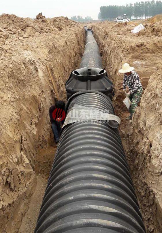 山東輝煌的“煌達(dá)”牌鋼帶增強(qiáng)螺旋波紋管很好的結(jié)合了鋼、塑各自的優(yōu)點(diǎn),用連續(xù)鋼帶壓成近似“U” 形的鋼筋被纏繞在內(nèi)外兩層熱熔接的聚乙烯間,把鋼材的高剛度、高強(qiáng)度和聚乙烯的柔韌、耐腐、耐磨等優(yōu)良性結(jié)合起來,可使管材達(dá)到SN8、SN12.5、SN16 三個(gè)級(jí)別環(huán)剛度,解決了鋼材的耐腐蝕問題,突破了較大直徑全塑料埋地排水管環(huán)剛度一般只能達(dá)到SN8的限制。鋼塑復(fù)合管儼然已成為排水、排污用管的佼佼者